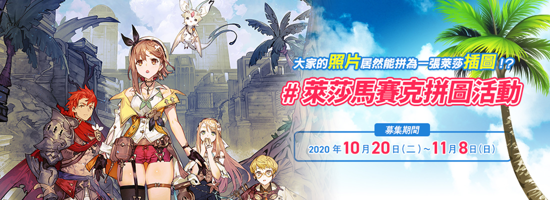 為了紀念萊莎一行人的夏日冒險,特此募集各位的「夏日回憶」及「 萊莎」相關照片,一起來創作「馬賽克拼圖」吧!