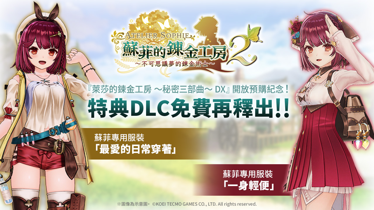 ※收費DLC第1彈的3套服裝包含於「蘇菲的鍊金工房2 季票」內,持有「蘇菲的鍊金工房2 季票」的玩家無需另行購買。請留意避免重複購買。