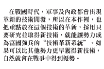 在技術革新系統裡,可以研究《足輕、騎馬、弓、鐵砲、兵器、水軍、築城、內政》8個系統,不過,並不是每一個勢力都可以在相同條件下研究全部的技術系統,像織田家的鐵砲、武田家的騎馬和內政,就是該勢力容易獲得的技術系統。透過技術革新系統,能取得的技術多達80種以上!以下我們先簡單的介紹幾種吧! |