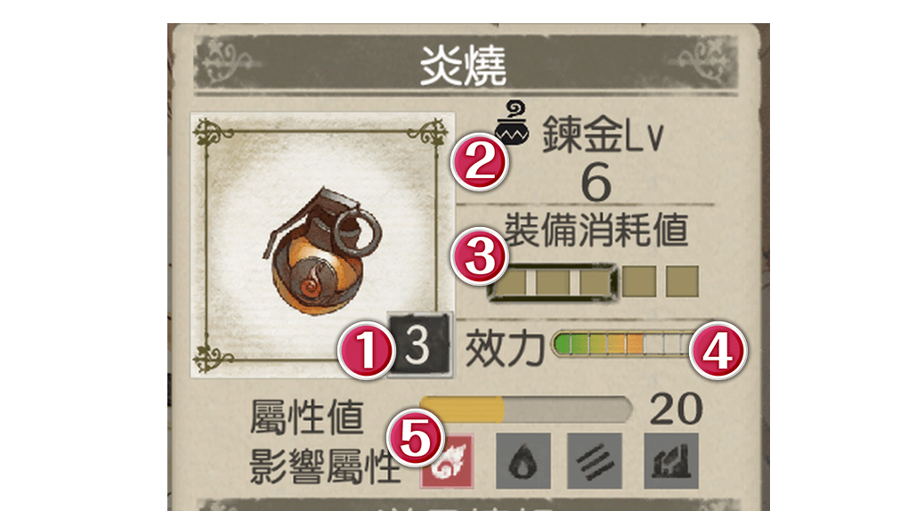 鍊金Lv為調合.鍊成該道具時所需的等級。另外,也是將該道具作為材料使用時所需的等級。