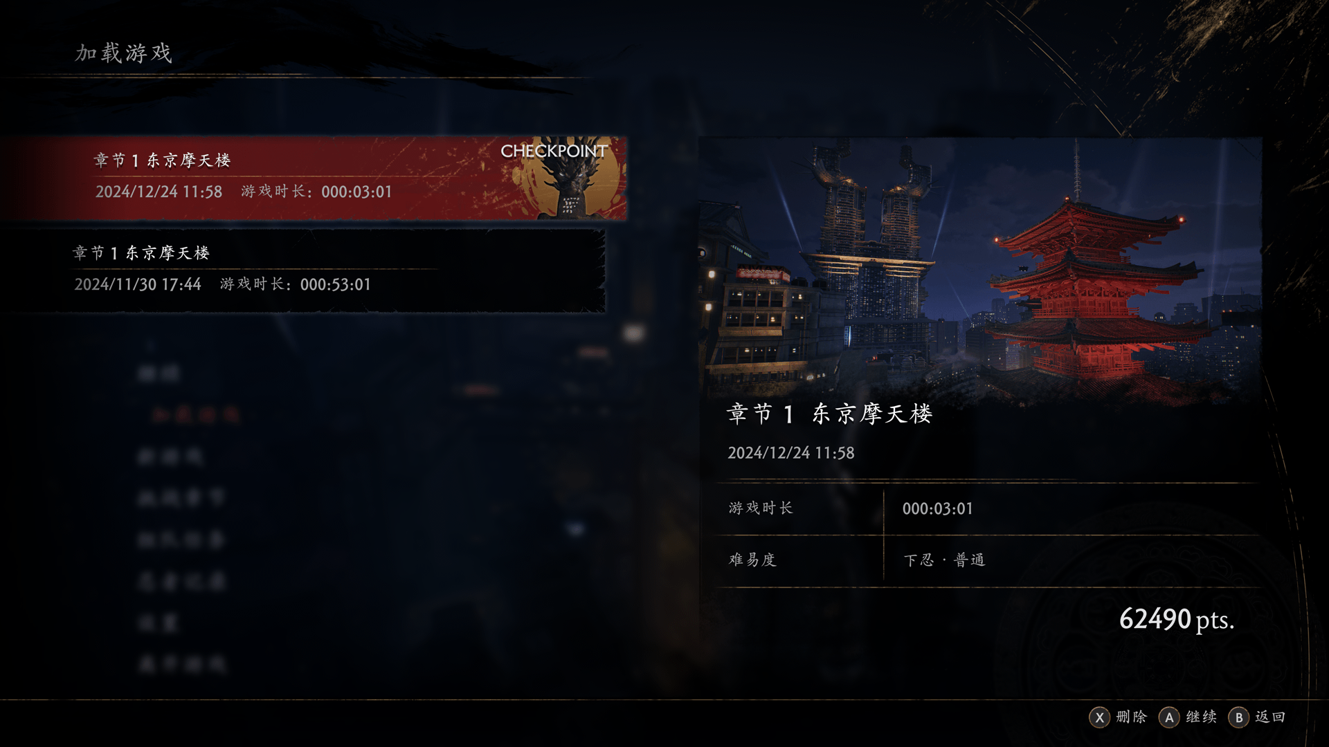 当有保存数据存在时显示。可从上次保存的存档点继续游戏。