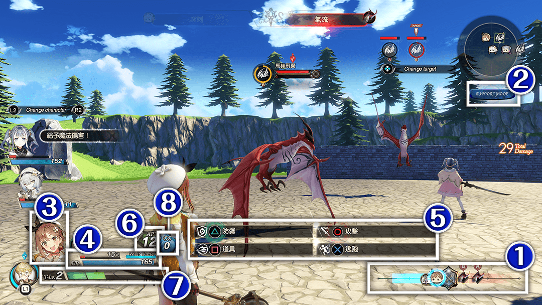 戰鬥中隨時都能切換為「支援模式」或是「積極模式」。