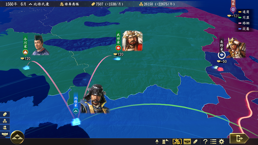 與其他勢力成為合戰狀態後顯示。選擇後可以確認細節。