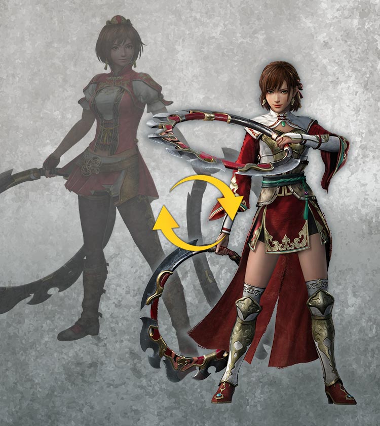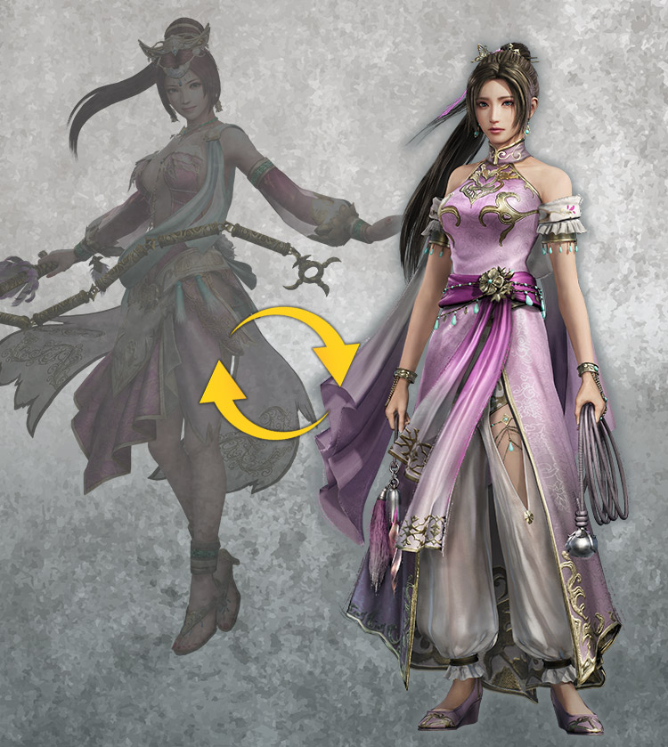 追加語音、服裝、各種性能會隨《真·三國無雙 起源》的裝扮變化的異化角色「貂蟬」「袁紹」組合。