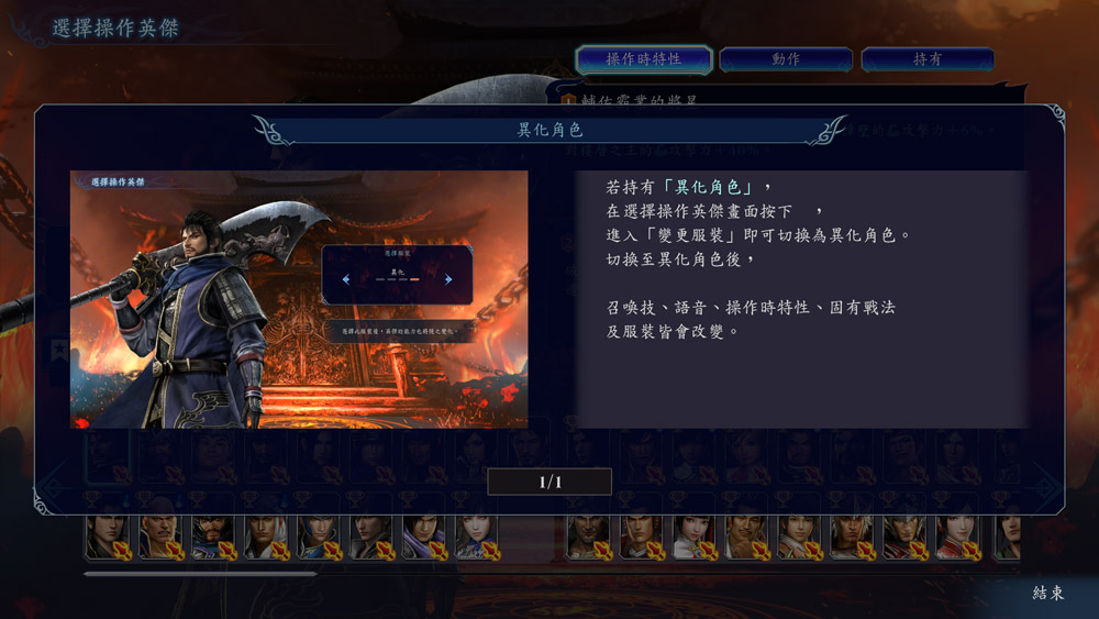 - ※若持有「異化角色」,在選擇操作英傑畫面按下“觸碰板按鈕”,進入「變更服裝」即可切換為異化角色。