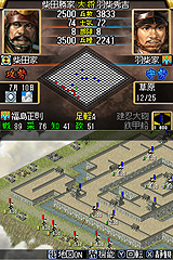 「用筆觸控部隊或地圖」。在NDS上,就可以用這種直接的操作方式,來順暢的進行遊戲。另外,活用雙螢幕的特性,上方螢幕為情報,下方螢幕為輸入,形成更方便的介面。