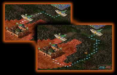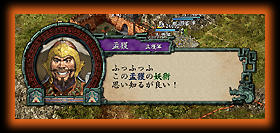 被長安、宛、許昌同時攻打的新野劉 備軍。 電腦會視戰況需要使用戰略,譬如同時由許多設施派軍連攜出擊、或指示軍隊救援陷入危機的設施。 再也不是笨笨的亂打一通了。 小看電腦的話,會吃大虧喔! |