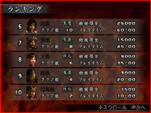 在任務中死亡、或任務結束後選擇〔終了〕,就會進入排行榜畫面。盡量多完成一些任務,衝上排行榜的前幾名吧! |