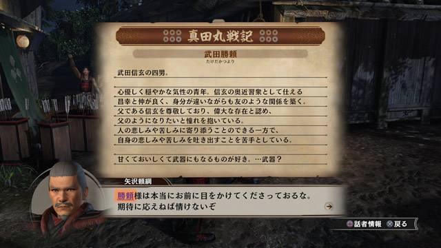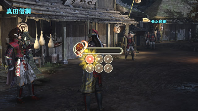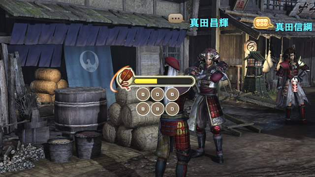 在城下町與人們交流收集情報,達成戰場設定的「功勳」後可累積「真田六文錢」。