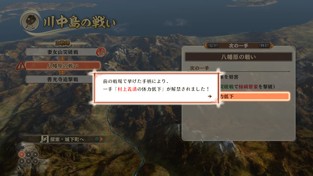 而「下一步謀略」的內容及發動時機,依合戰有所不同。