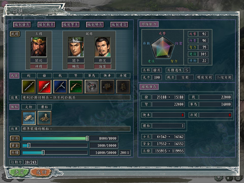 需要「槍兵」「戟兵」等等的特定武器,才能編制的兵種,最好一開始就用都市指令的「兵裝生產」,把武器準備好。