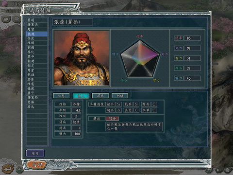 像張飛擁有的「鬥神」,當槍兵、戟兵戰法成功時,可以給敵軍很大的損傷。