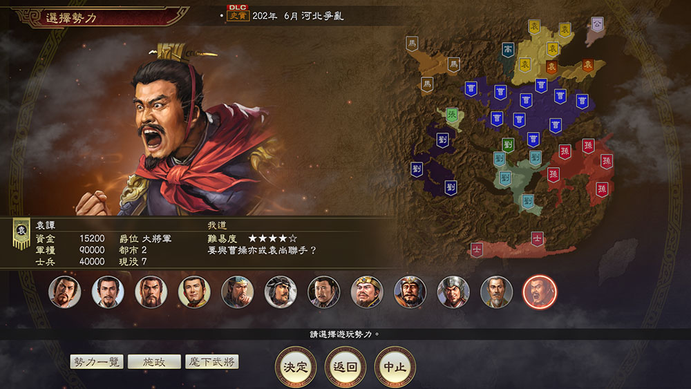 玩家可以從這些個性豐富的群雄當中選擇一個勢力進行遊戲,構築自己的戰略以統一中華大地。