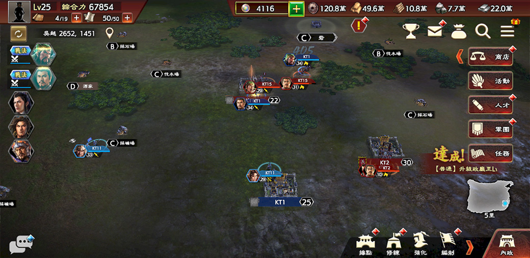 部隊操作,非下達一次性指示即可,需要視戰況下達包圍、迂迴、夾擊等指令,自由操縱部隊行動。