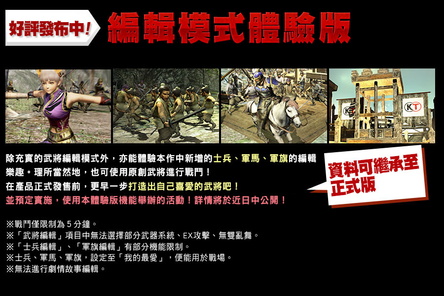※將武將資料自PS3®版『真・三國無雙6 Empires』繼承至PS3®版「體驗版」時,