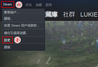 ①登入Steam用戶端,點選左上方的「Steam」項目。