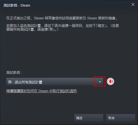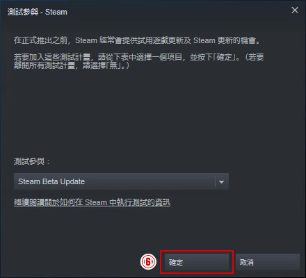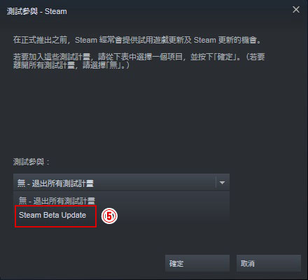 ⑤點選「Steam Beta Update」項目。