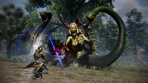 在戰之原,如黑貓般的"鬼"現身了。會使用各種攻擊外,還能隱身,真是令人十分棘手的敵人。首先要先看穿敵人的行動。趁停止攻擊,一氣呵成討伐牠!