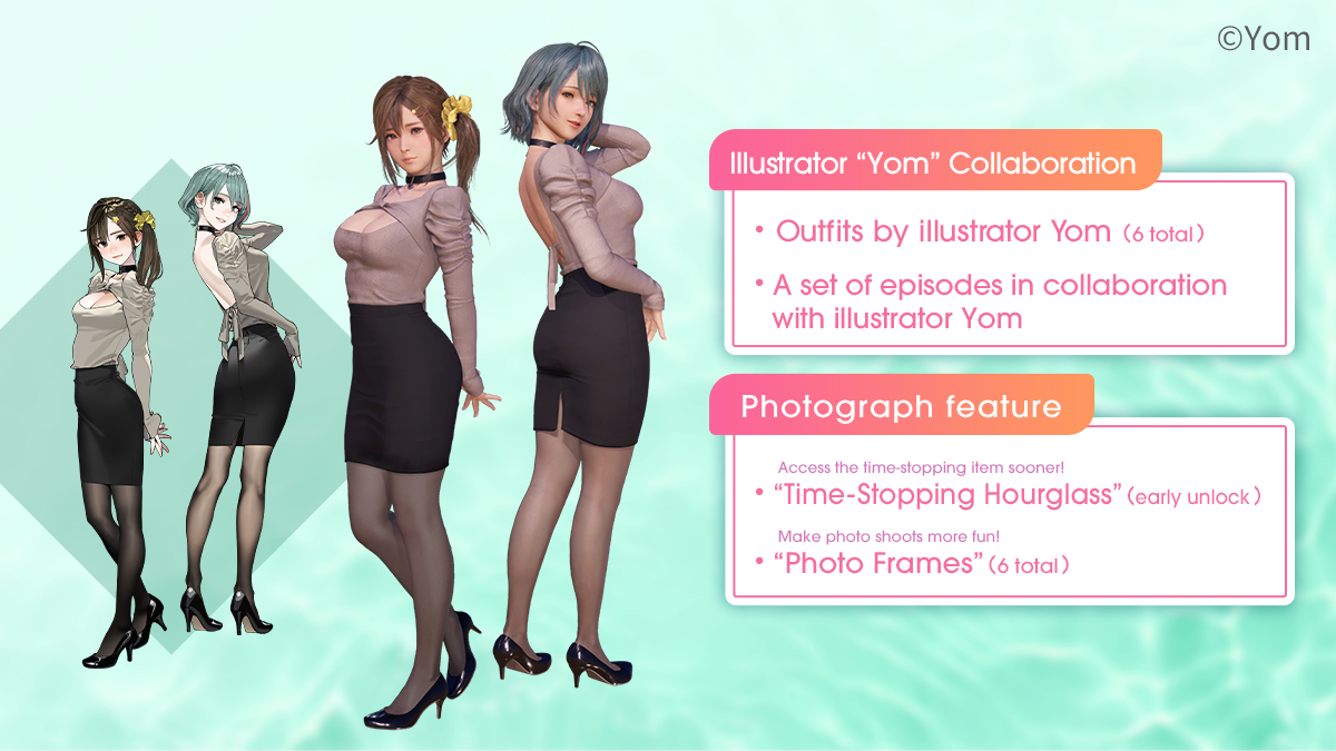 | Illustrator “Yom” Collaboration ・Outfits by illustrator Yom (6 total) ・A set of episodes in collaboration with illustrator Yom |